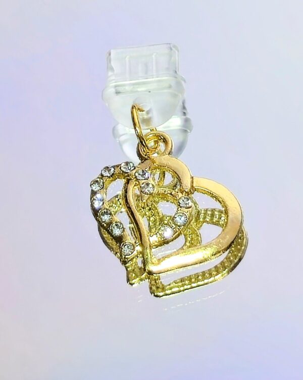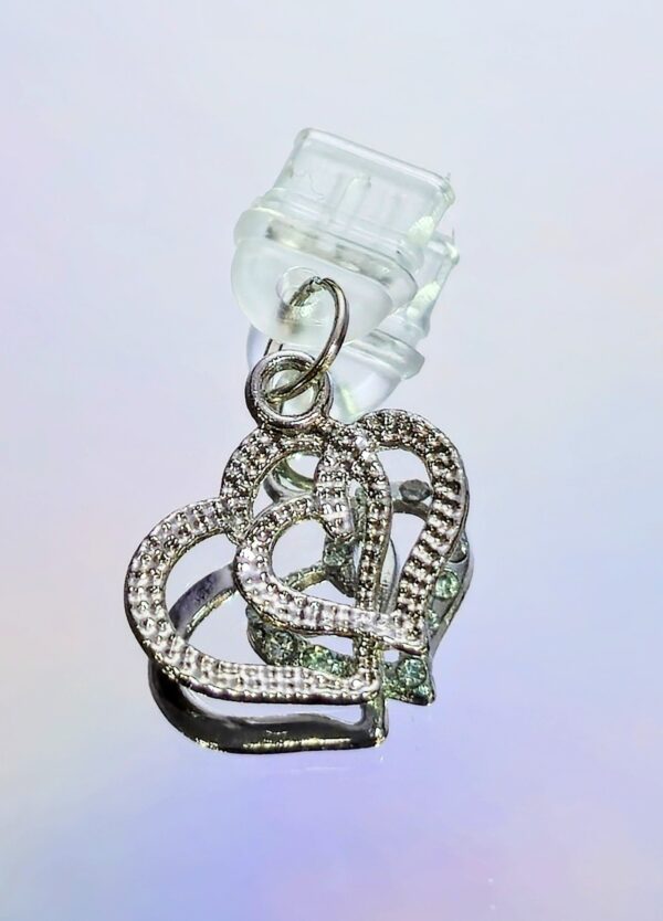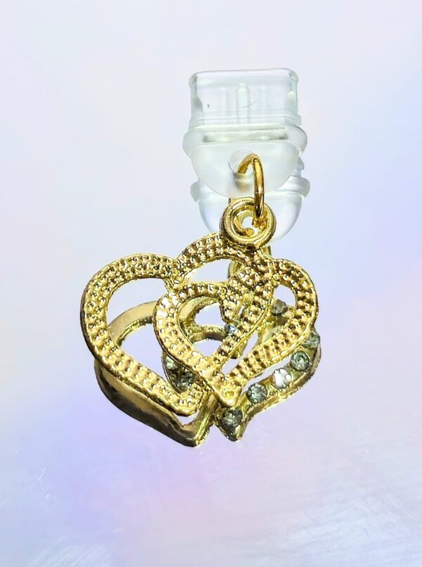 Make your device stand out with our Double Heart Bling USB-C Charm, designed for those who love a touch of sparkle and personality. Featuring a dual-heart design adorned with rhinestones, this charm easily plugs into your USB-C port for flair and dust protection. Available in silver or gold, it’s the perfect accessory for phones, tablets, and more.