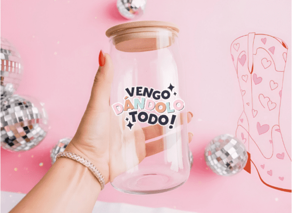 Whether you’re celebrating a friend’s new job, a bridal shower, or simply want to brighten someone’s day, this glass can set is sure to impress. So why wait? Make every drink an occasion with our “Vengo Dandolo Todo” Glass Can and let your loved ones know they’re worth every sip!