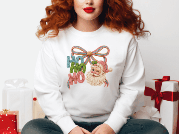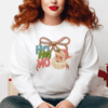 Make spirits bright with this joyful holiday sweatshirt! Our “HO HO HO” Santa Crewneck is a celebration of classic Christmas charm with a modern twist. Featuring vibrant lettering in blue, green, and red, a cheerful Santa face, and a show-stopping red, pink, and gold bow, this design is made to turn heads and warm hearts.