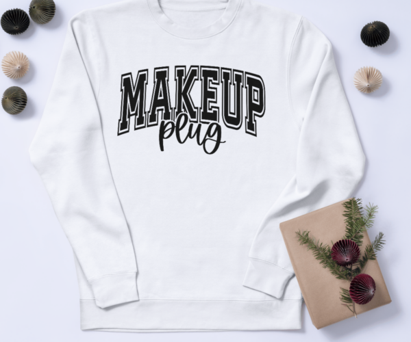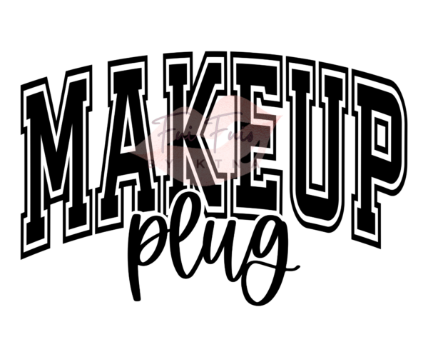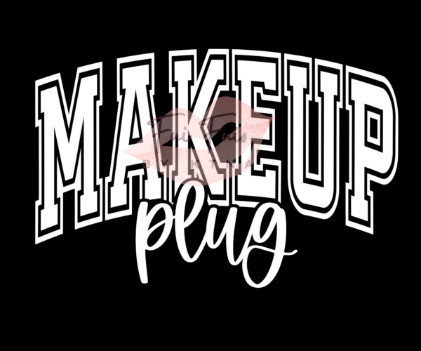 - Design: Bold uppercase text reading “MAKEUP plug”