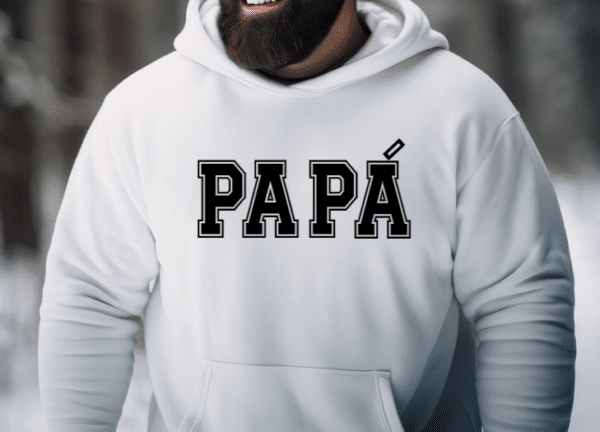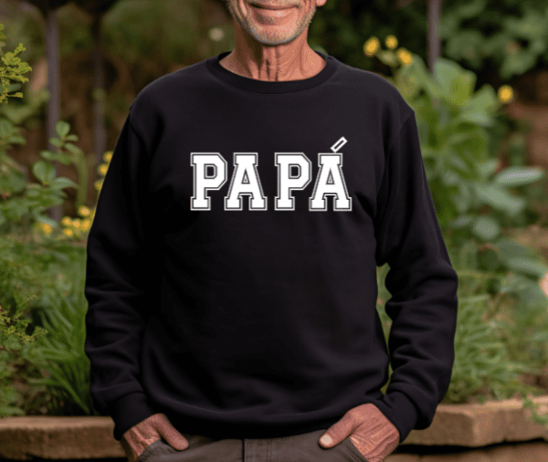 Introducing our whimsical yet wonderfully stylish “Papá” shirts, the ultimate fashion statement for the coolest abuelos out there! Crafted with love and a keen eye for detail, these shirts aren’t just garments; they’re a warm hug from the family. Available in the ever-classic Black and pristine White, we’ve got just the shade to match every grandpa’s unique style. And because we know one size never fits all when it comes to fashion preferences, we’re offering these gems in three versatile styles: the laid-back T-shirt, the cozy Crewneck Sweatshirt, and the snuggle-ready Hoodie. Each style is designed to celebrate the vibrant Latino heritage, with the accent on the second ‘A’ in “Papá” adding a touch of authenticity and charm.