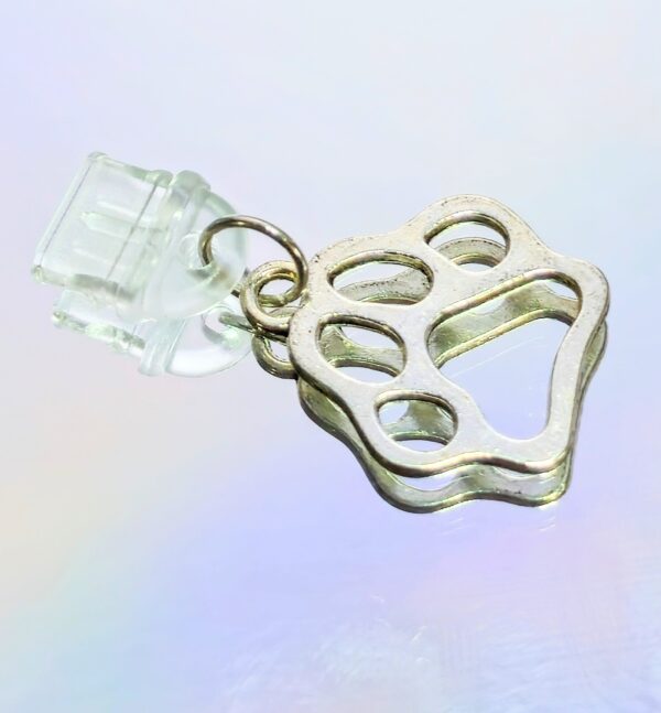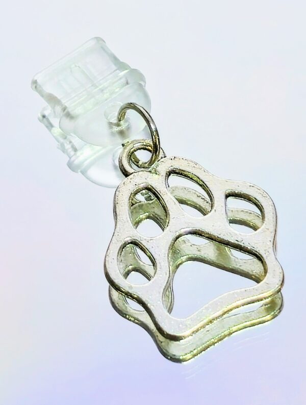 Calling all pet lovers! Add a touch of personality to your phone or tablet with this adorable Silver Dog Paw USB-C Charm. Crafted with a shiny silver alloy paw design and a soft silicone USB0C dust plug, this charm does double duty” Protects your port from dust and debris, while expressing your love for furry friends.